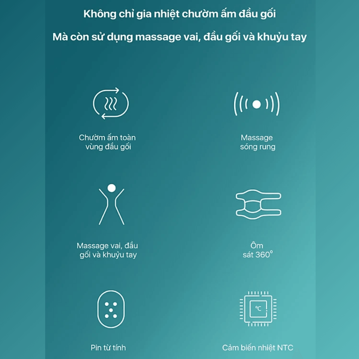 Mát xa chính xác các huyệt quan trọng của đầu gối, và có tác dụng trên nhiều vùng cơ thể hơn. Sử dụng các loại vải thân thiện với da để nâng cao trải nghiệm, thúc đẩy lưu thông máu và giảm bớt sự khó chịu.