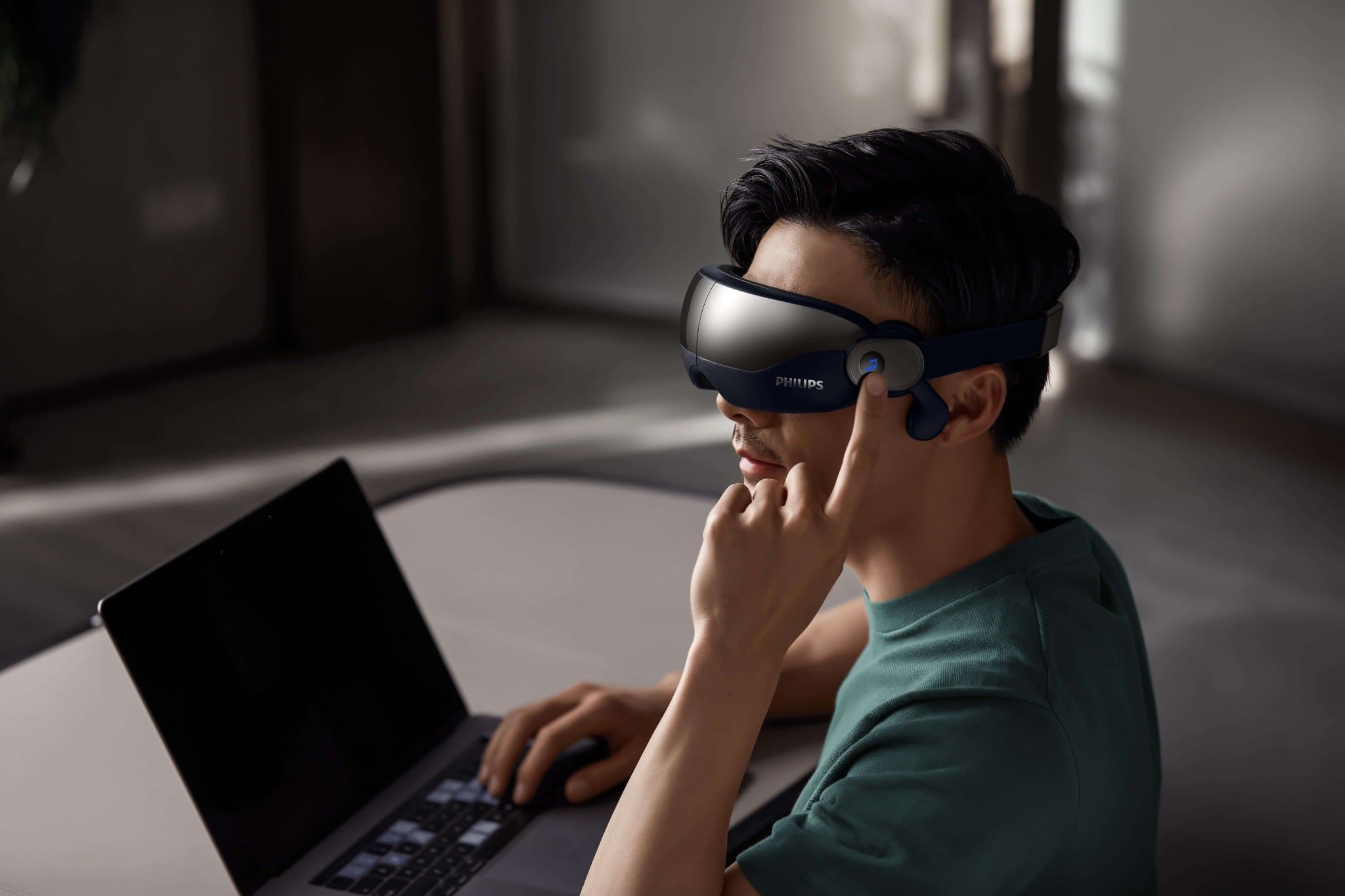 Máy massage mắt Philips PPM2702 được bổ sung cải tiến hệ thống dẫn truyền âm qua xương và tối ưu hóa hệ thống massage 3D, giúp giảm mỏi mắt hoàn toàn. Được trang bị túi khí bên độc lập, sản phẩm này chăm sóc đến tất cả các vùng xung quanh mắt. Hỗ trợ chườm nóng thư giãn massage mắt