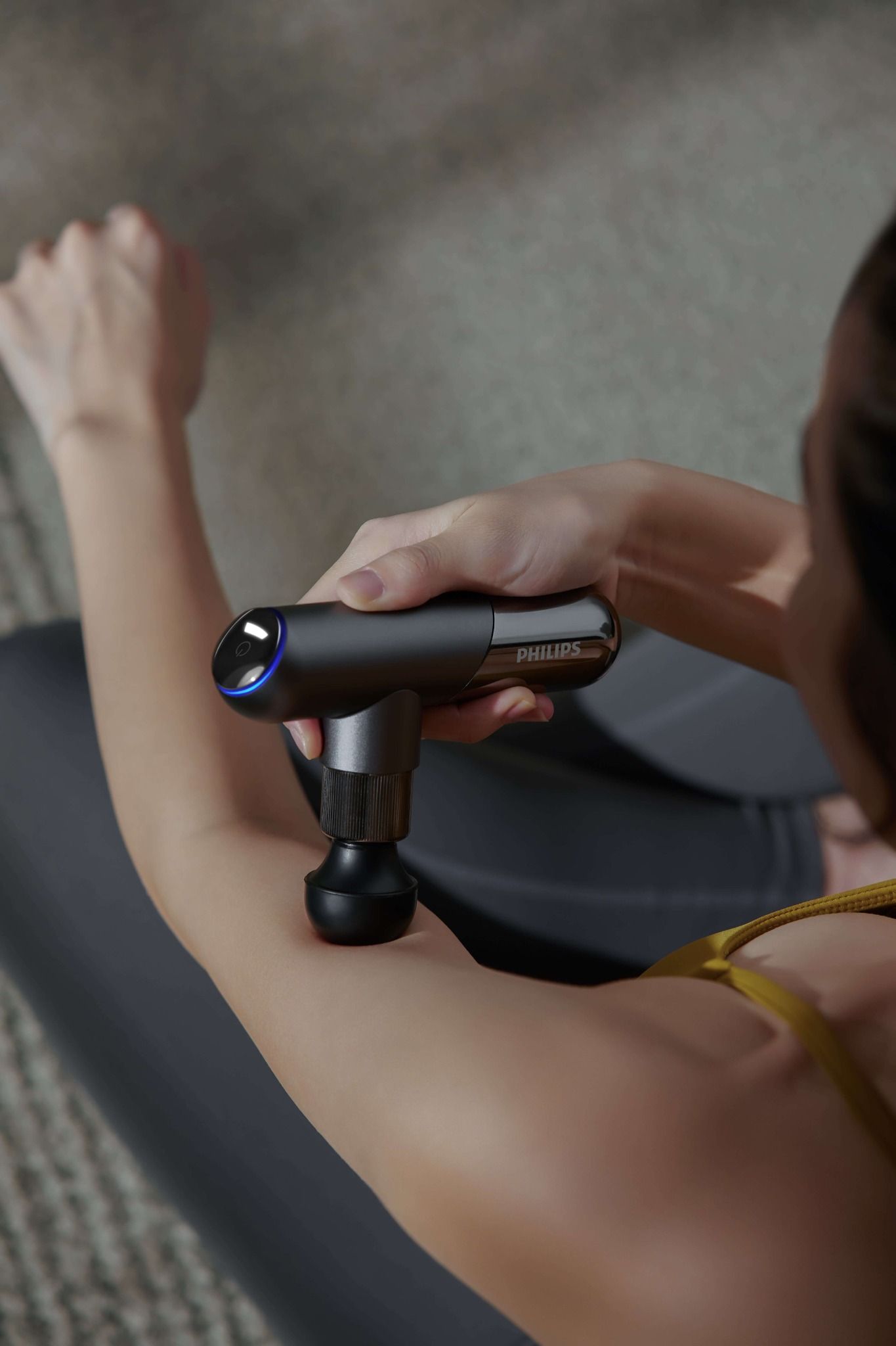 Máy massage thể thao mini Philips PPM7501 nhỏ gọn này là một công cụ hữu ích cho những người tập thể dục thường xuyên. Với động cơ mạnh mẽ, máy có thể cung cấp công suất 10kg đáng kinh ngạc ở độ sâu massage 0,8 cm, rất phù hợp để làm nóng và phục hồi cơ thể sau khi vận động thể thao.