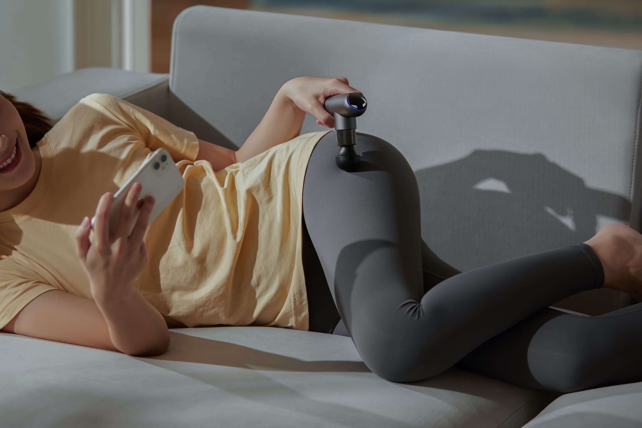 Vòng sáng phản hồi cường độ theo thời gian thực bằng màu sắc. Bạn có thể theo dõi áp lực bạn đang sử dụng trên cơ thể để có thể điều chỉnh kế hoạch mát xa theo lời khuyên của chuyên viên vật lý trị liệu.