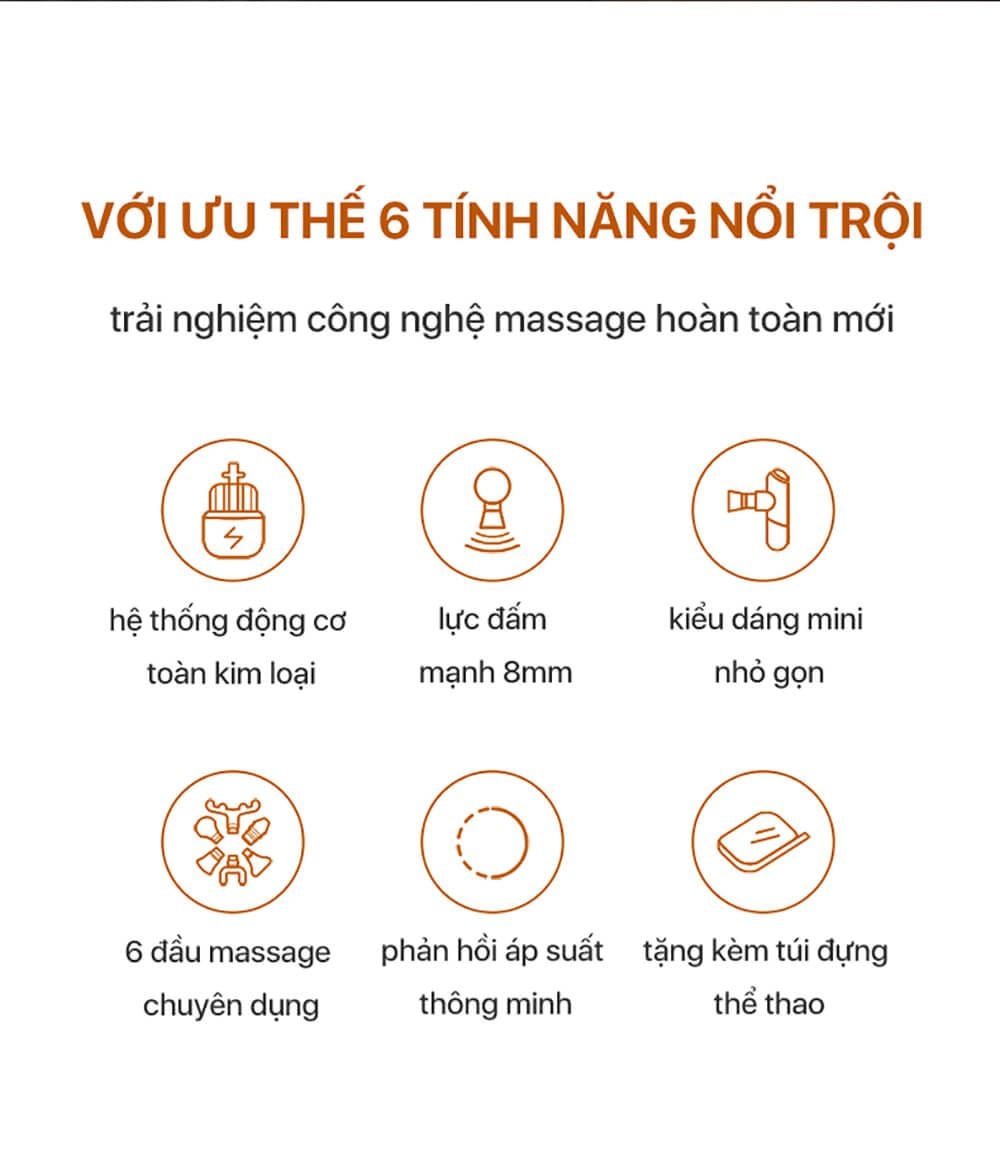 | Phụ kiện | 6 đầu massage Túi đựng thể thao |