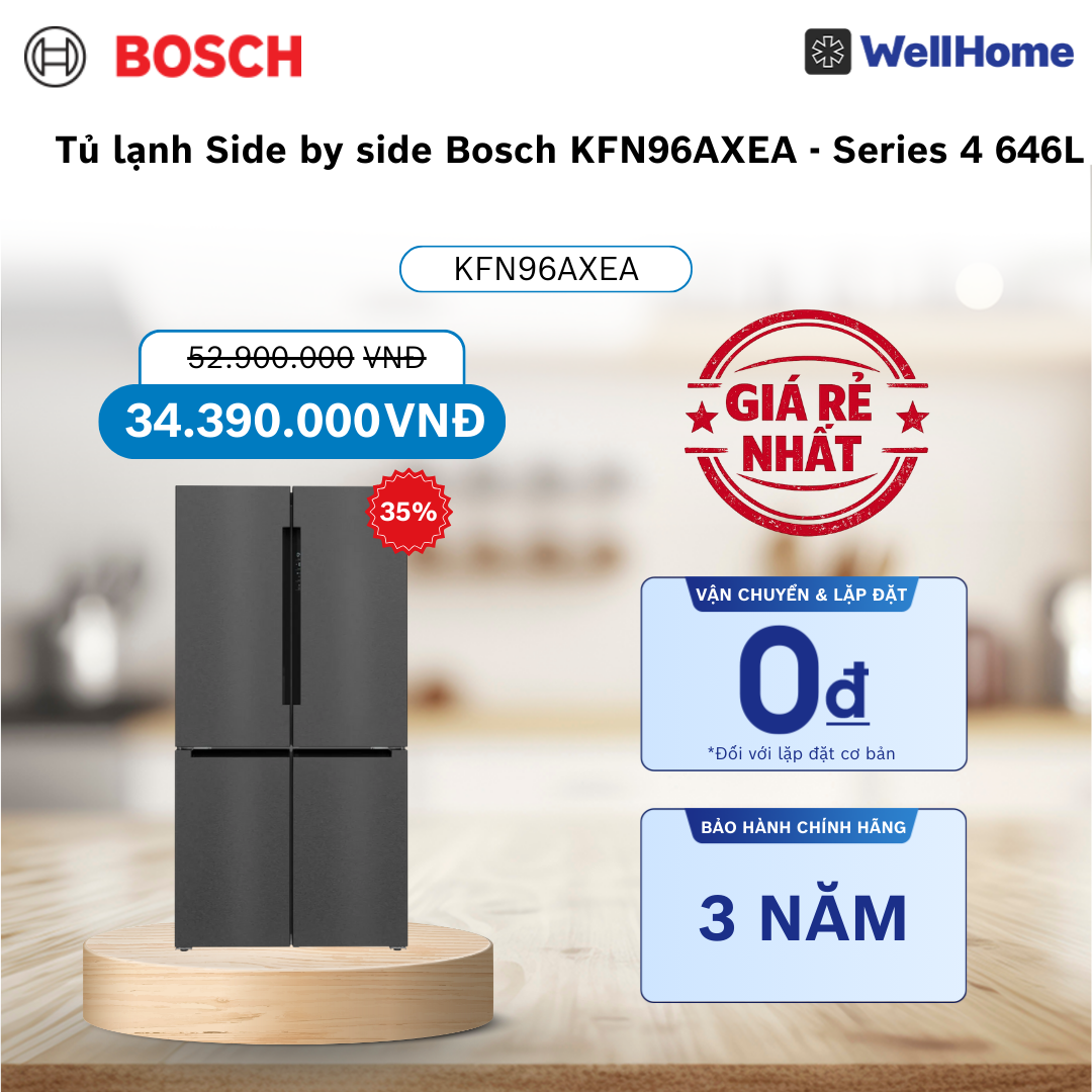 | Tên sản phẩm | Tủ lạnh Side by side Bosch KFN96AXEA - Series 4 646L |